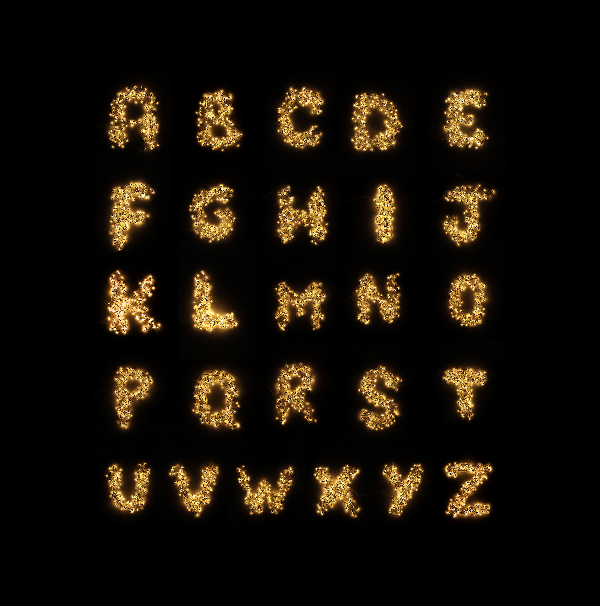 All the letters were handcrafted and photographed individually, using Christmas decoration lights.