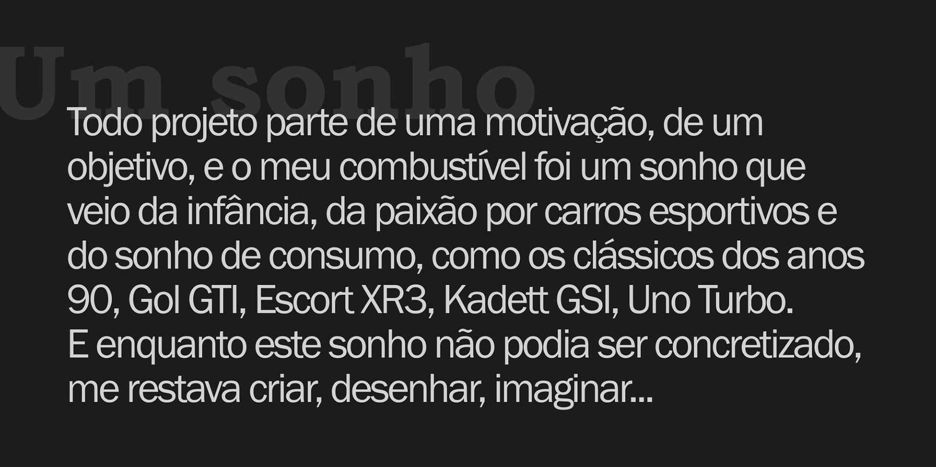 Bringing a dream to life is something surreal. Not only the dream of having a car my way but also the dream of having completed the project with people I admire, having it “packaged” and delivered in a special place, having it photographed by an amazing photographer, and of course, having participated, designed (just like I used to do when I was a kid), and followed everything closely!