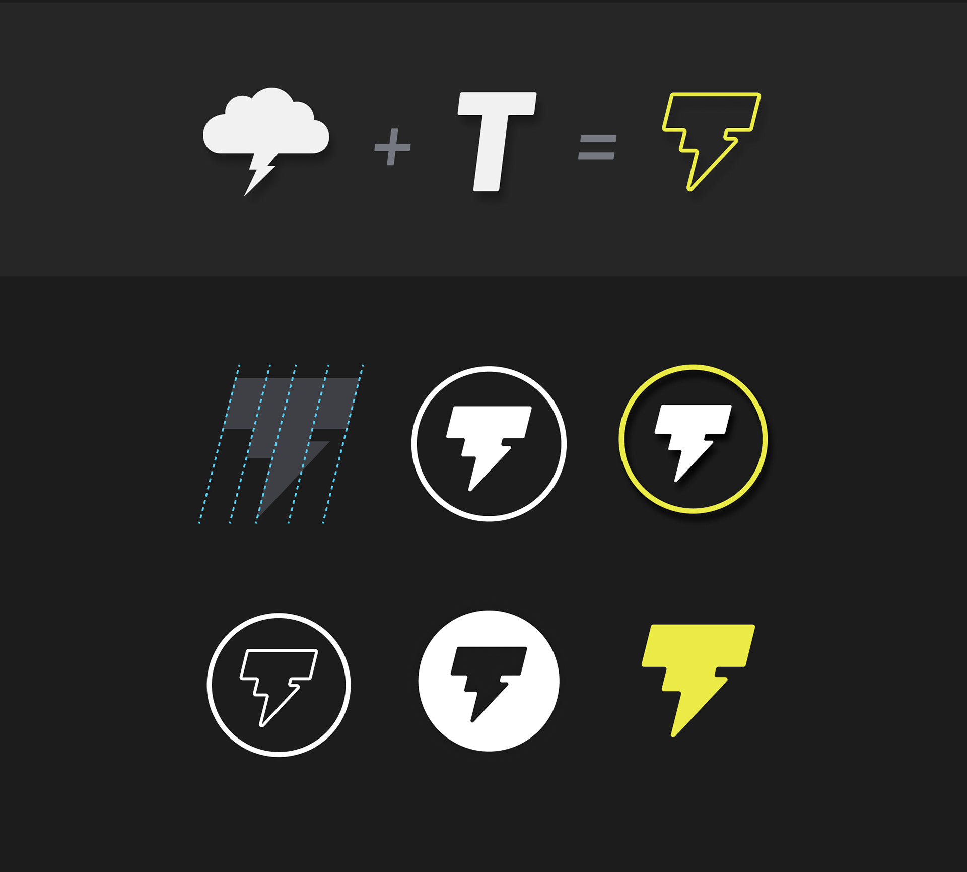 Based on the name "Trovão" adopted for the car, I also created an identity composed of yellow and white (or black), present in some project elements, using a mix of the cloud/lightning element with the letter "T".